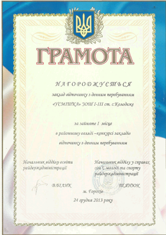 Табір з денним перебуванням «Усмішка» ЗОШ І-ІІІ ст. с. Колодеже двічі займав І місце в районному огляді-конкурсі дитячих закладів відпочинку (2012-2013 н. р., 2016-2017 н. р.)