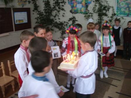 Учні 1 класу спробували відтворити давні традиції закликання весни, співали веснянки, водили кривий танець, заплітали шума та розповідали багато цікавого. А в кінці свята пригощали всіх учнів початкових класів печивом у вигляді жайворонків. Основою свята, організованого Чижук О. В., стали обряди та звичаї зустрічі весни українського народу.