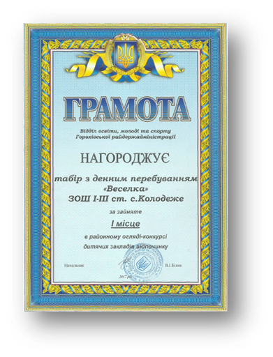 Табір з денним перебуванням «Усмішка» ЗОШ І-ІІІ ст. с. Колодеже двічі займав І місце в районному огляді-конкурсі дитячих закладів відпочинку (2012-2013 н. р., 2016-2017 н. р.)