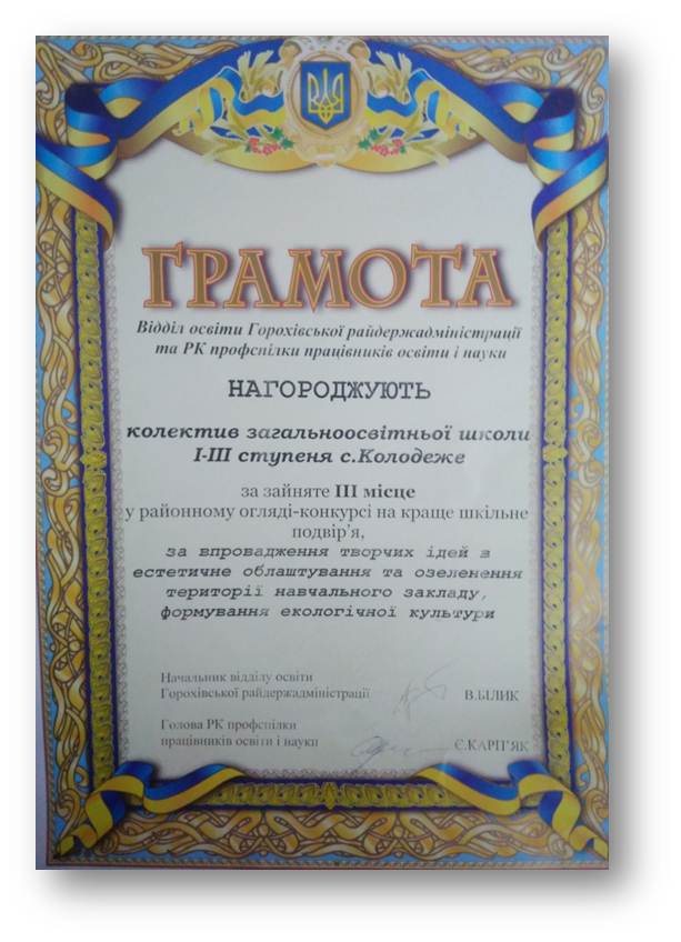 Працівники ЗОШ І-ІІІ ст. с. Колодеже старанно працюють, дотримуються вказівок керівництва, активно приймають участь у районних та обласних конкурсах.